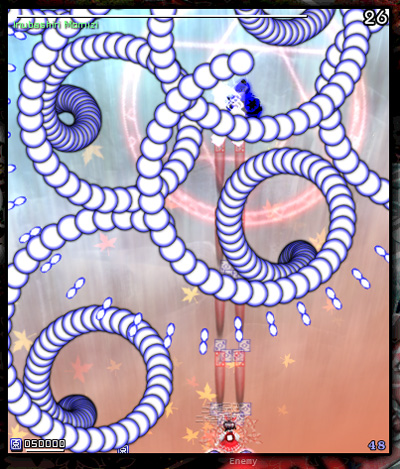 EASY弾幕ですら埋まって見えねえし(上のほうの光ってるあたりにいます)。